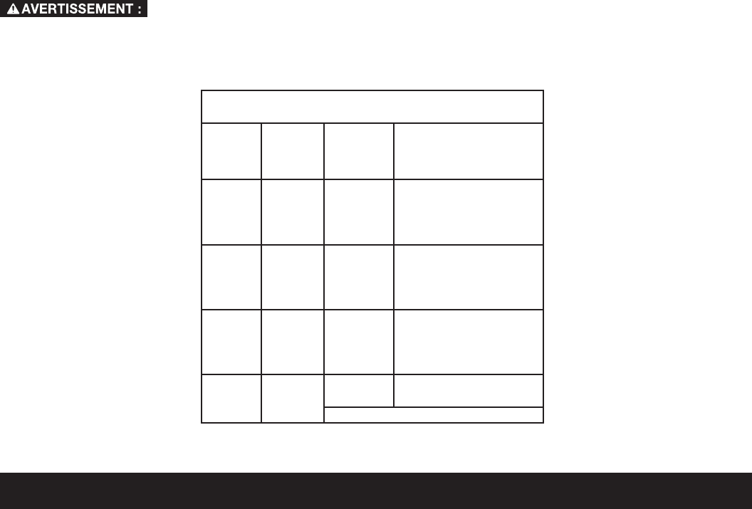TAILLES RECOMMANDÉES POUR L'CUSAGE AVEC STATIONNAIRES ÉLECTRIQUES LES OUTILS